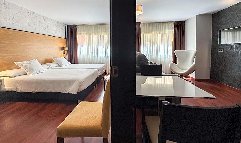 This modern, air-conditioned room has a lounge with free Wi-Fi, flat-screen satellite TV, a modern armchair and a mini-bar. The room has a bed and a sofa bed with a viscoelastic mattress. The private bathroom comes with a double sink and slippers.